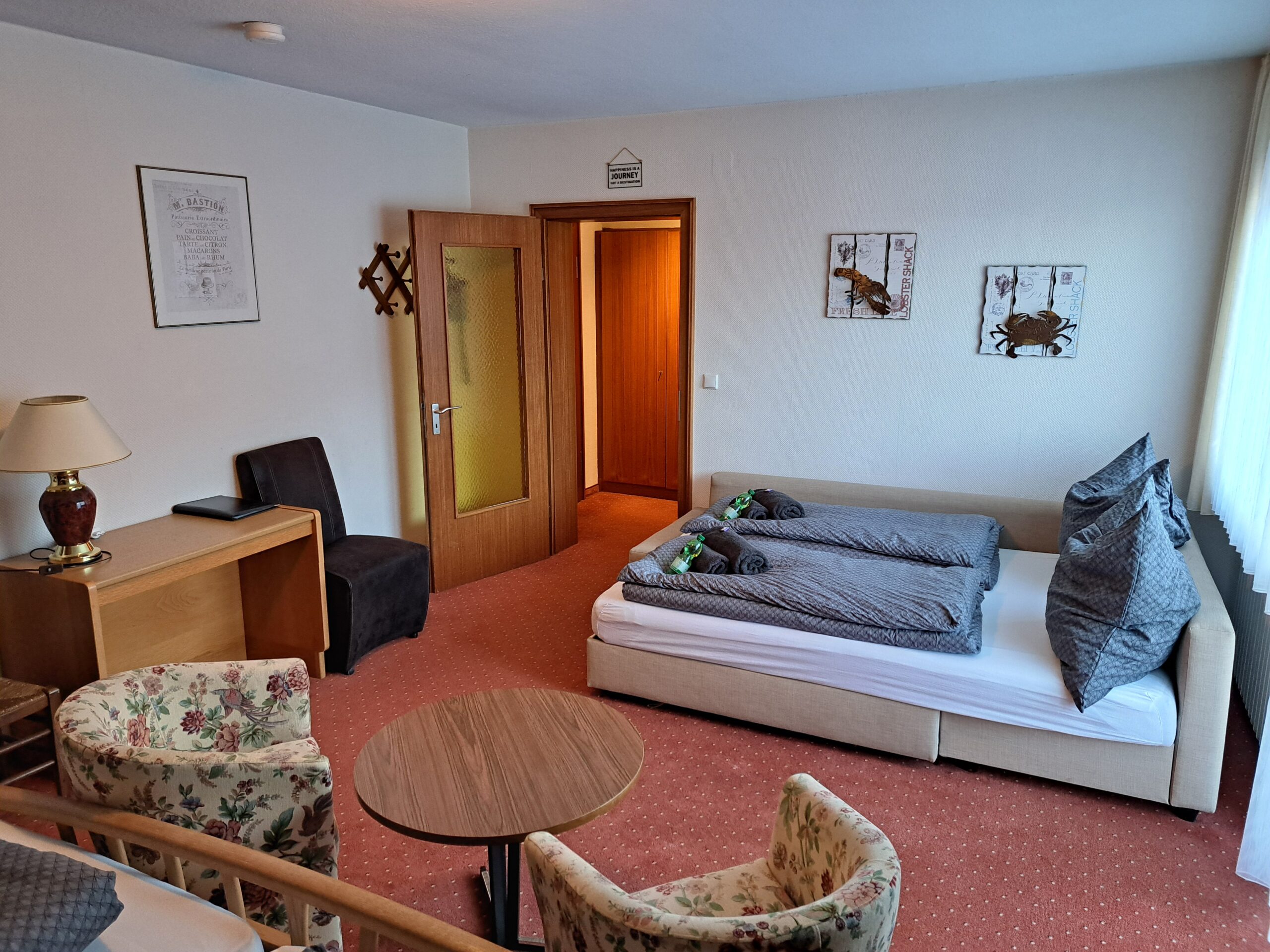 - 3 x 4 persoonskamers (kamer “De Luxe”, 2 persoonsbed, 2 persoons slaapsofa en balkon/terras)